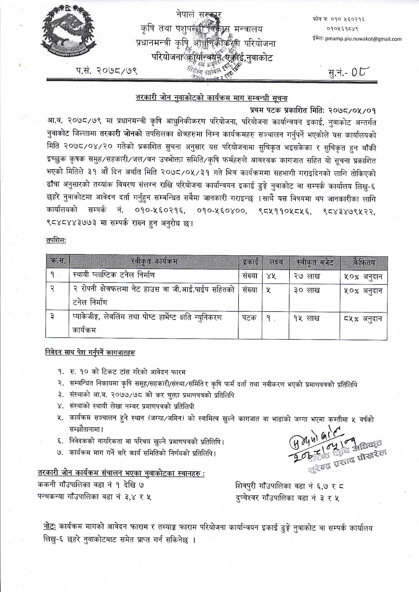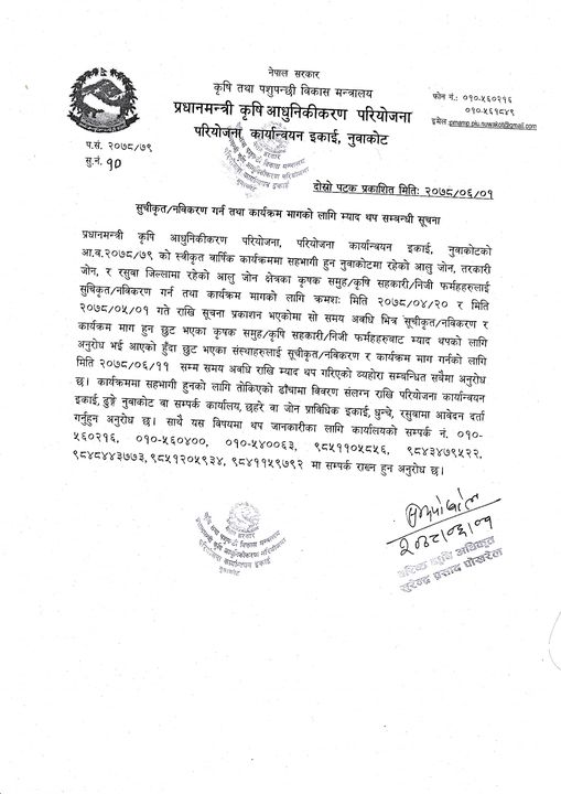 तरकारी जोन, नुवाकोटको कार्यक्रम माग सम्बन्धी सूचना 2078-05-01 Closed !!!